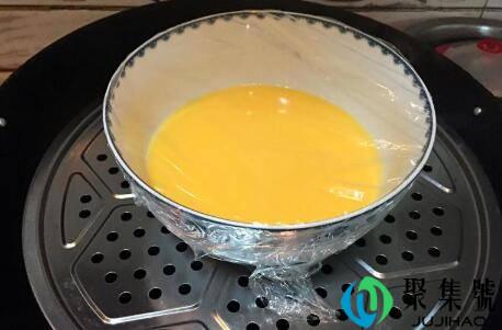 步调4:锅内放冷水,烧开,将容器的外表用保鲜膜包裹好后放入蒸锅,盖上锅盖蒸10分钟摆布,然后关火再虚蒸(焖)2-3分钟。