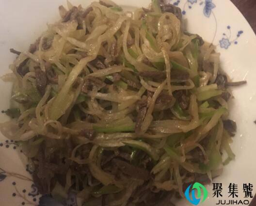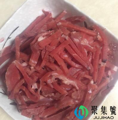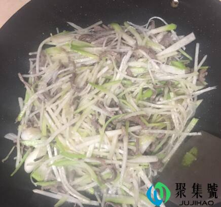 1、牛肉或者猪肉切成丝备用,青萝卜切丝备用。