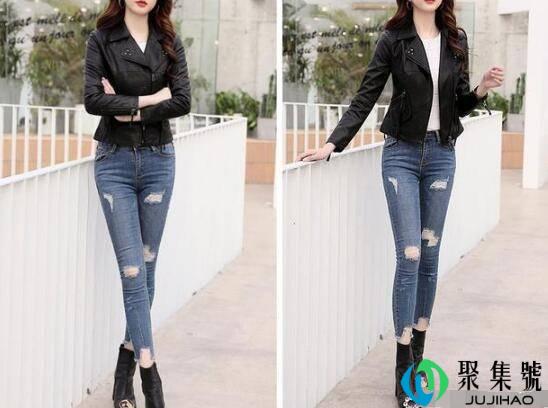 皮衣+破洞裤穿皮衣的时候,当然耍酷也要,女人味也不克不及缺失,当短款皮衣外衣搭配破洞裤会有你意想不到的穿搭效果,气概会显然差别呢,酷中带着甜美感,紧身的穿搭,让你提拔外型的整体气焰,比力守旧的蜜斯姐能够大方穿起来,脚踩短靴会更有时髦感!