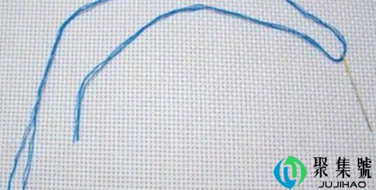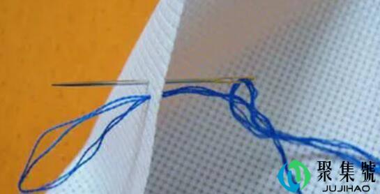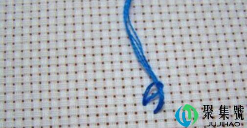 3、然后再将针穿到绣布的后背,构成一个圈,将针从圈里面穿过,固定住线头即可,因为十字绣一般都不消打结,用线压造住就能够。