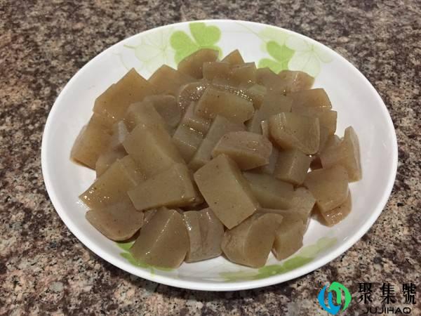 3、锅内将水烧开倒入魔芋豆腐参加少许盐,焯烫1~2分钟。