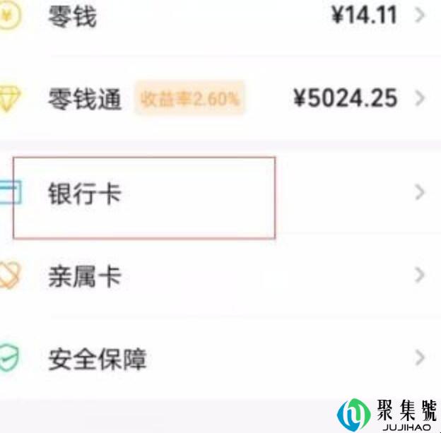 4、在翻开的钱包的界面中,点击“银行卡”选项。
