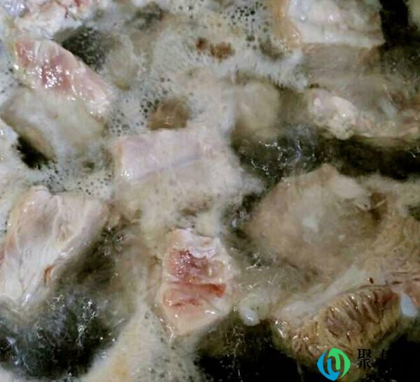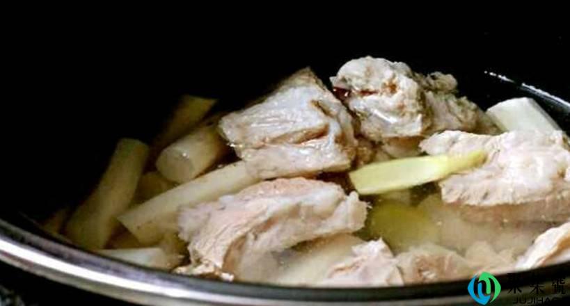 3、锅里参加适量的水,放入排骨、山药、姜煮半个小时。