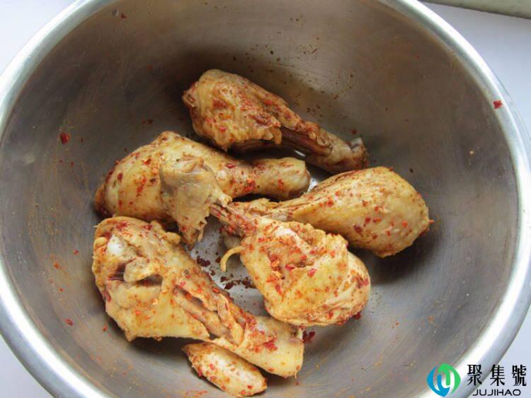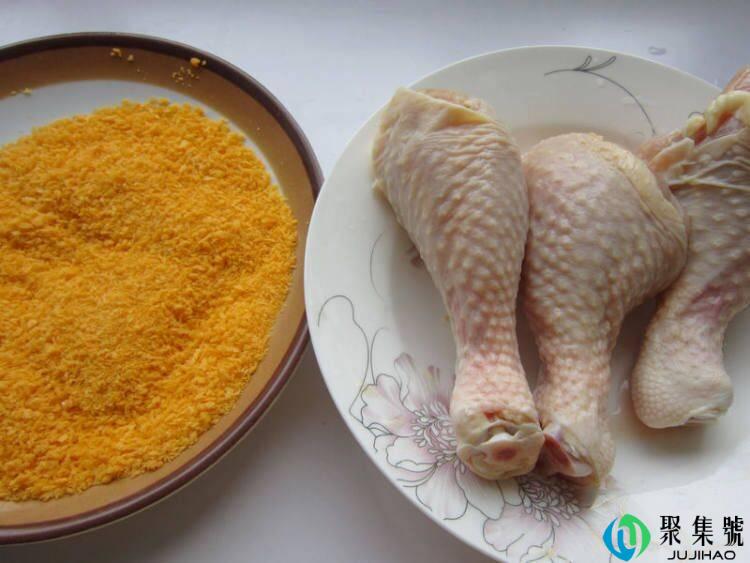 1、食材筹办:鸡小腿、动物油、盐、鸡蛋、面包糠、辣椒粉、孜然粉、黑胡椒粉、淀粉、面粉、料酒、姜。