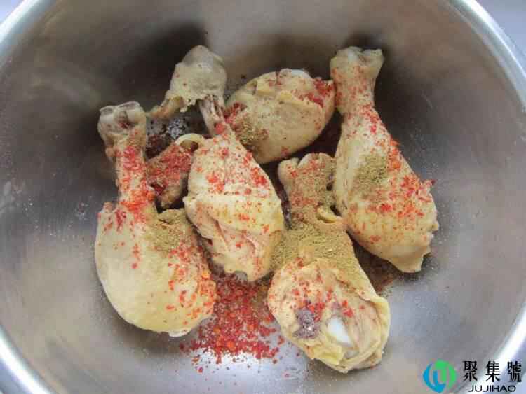 3、加盐、辣椒粉、孜然粉、黑胡椒粉。