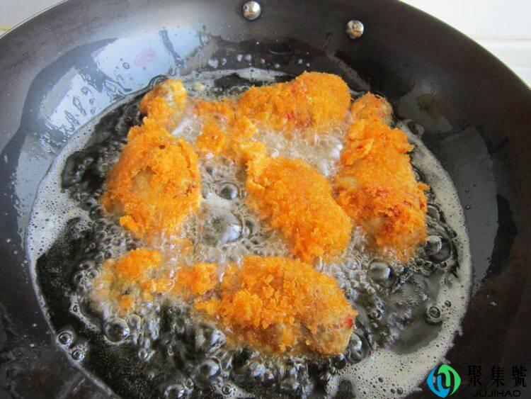 7、在平均地拍上面包糠。