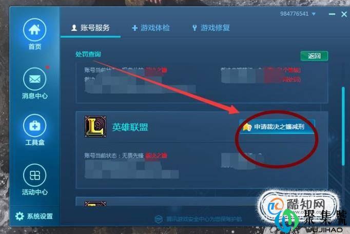 正文 lol封号一天怎么解封 百科达人 V网站编辑 /2021-09-22 18:33:57 /549 阅读 0922 第一、 起首你要做的就是登录到腾讯游戏的平安中心如下图。 第二、 然后在主页上面会有一个惩罚查询,然后点击进入,如下图 第三、 进入之后你会看到比来的被惩罚情况,当然我小我账号没有被封号,但是若是封号一天的话,那么也是能够在那里显示而且能够申述弛刑。那么只要你找到弛刑之后点击进入 第四、 进入之后点击我同意提交就能够了,一般只要你是初犯城市弛刑胜利的。 声明:本文内容及图片来源于读者投稿,本网站无法甄别是否为投稿用户创作以及文章的准确性,本站尊重并保护知识产权,根据《信息网络传播权保护条例》,如果我们转载的作品侵犯了您的权利,请在一个月内通知我们,我们会及时删除。请将本侵权页面网址发送邮件到laoyang1981@qq.com,我们会及时做删除处理。