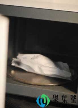 2、用一张纸将红薯包起来,放入微波炉的托盘上。