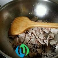 瘦肉切片,锅里倒油,下瘦肉,快速翻炒。