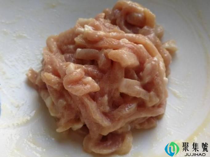 2、肉丝用少许盐,料酒,生抽,玉米淀粉抓匀。