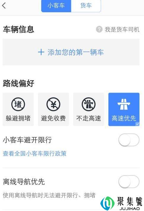 点击选择高速优先,如许在利用导航的时候,会优先选择高速行驶道路。