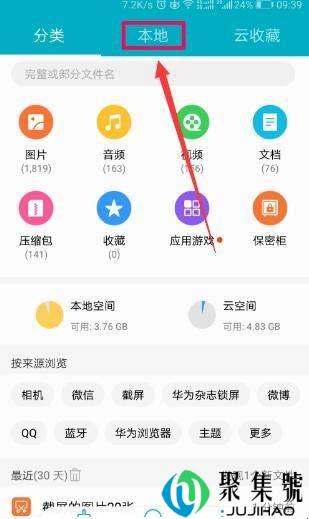 2、在文件办理”界面中,我们点击当地”,进入当地存储的页面,如下图。