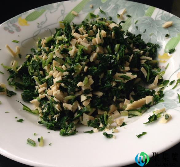 3、把马兰头挤干水分,切碎。