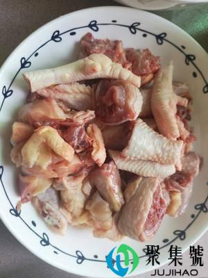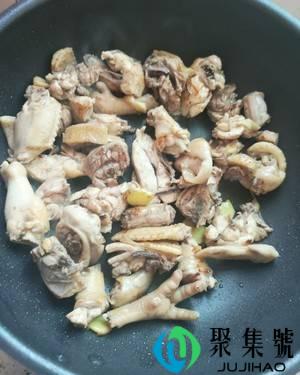 4、冷水下料酒,下姜片。下鸡肉。那一步去血水后鸡没那么腥。