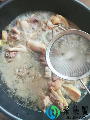 5、煮开以后捞起浮沫,将鸡肉冲刷清洁。