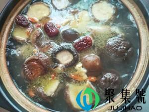 用料:鸡半只、干香菇20朵、红枣3颗、姜片5片、枸杞10粒、花旗参片20克、红枣3颗、盐10克、料酒半勺。
