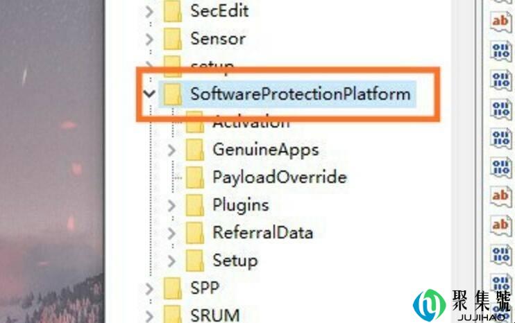 3、然后依次展开文件夹下的子目录:HKEY_LOCAL_MACHINE/SOFTWARE/Microsoft/WindowsNT/CurrentVersion/SoftwareProtectionPlatform。