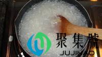3、锅中烧水,沸腾后,加入拌好油的米粒。继续保持中大火的状态,用勺子不断的朝同一个方向搅拌。搅拌到周围的水已经变成米浆的颜色。