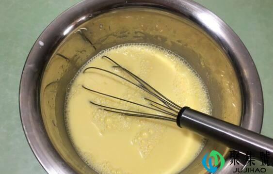 1、将除低粉以外的千层皮材料全部放入盆中,搅拌均匀至糖完全融化。