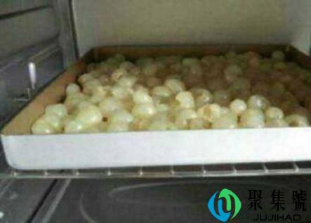 2、剥好的龙眼均匀铺在烤盘上,放入烤箱。