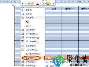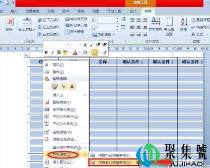 2、单击鼠标右键,在扩展框中选择“自动调整”选项,并在其子项中点击“根据内容调整表格”,文档中的表格即可全部显示。