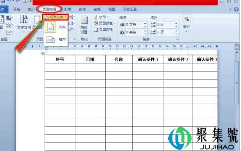 4、我们单击“页面布局”主菜单,在其子菜单“页面设置”组中点击“纸张方向”子项,这时会出现扩展项。
