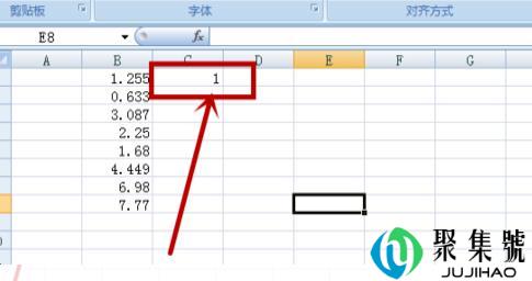 3、就会在C位置看到,相对应左边的B1位置的数据没有小数。