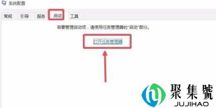 系统配置窗口,启动里面点击这里的任务管理器打开。