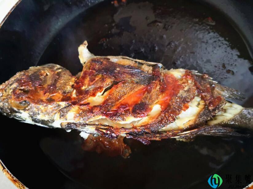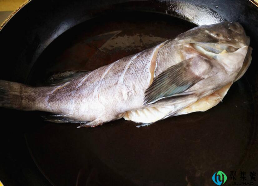 3、平底锅里一些食用油,把黑鱼放进去煎至两面金黄。