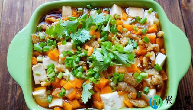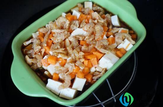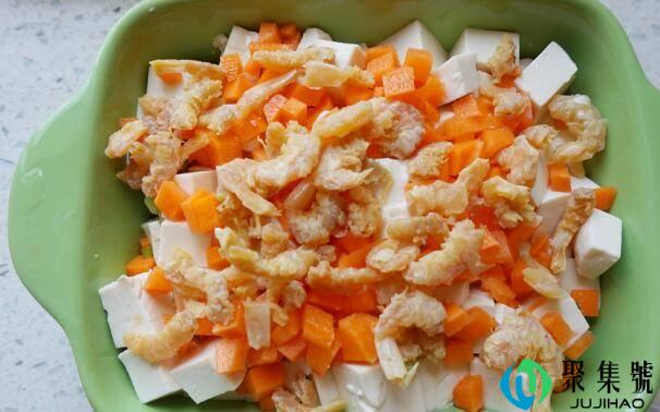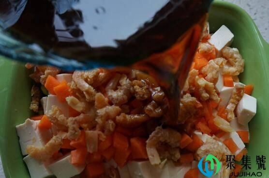 用料:南豆腐250克、虾干30克、胡萝卜半根、香葱适量、生抽2勺、白糖1茶匙、醋、水适量、盐适量、香油。