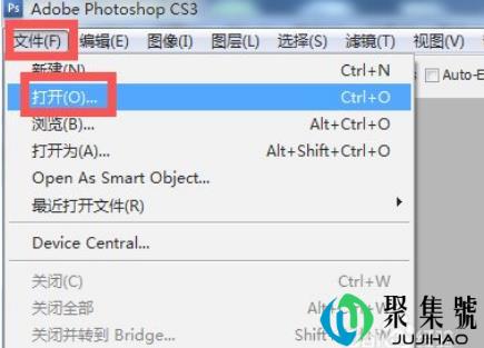 1、打开Adobe Photoshop,点击文件,打开。