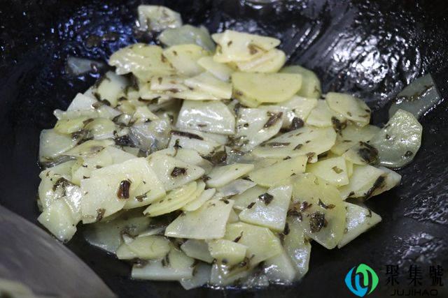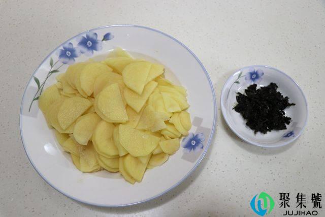 1、准备适量土豆和橄榄菜,土豆切片备用。