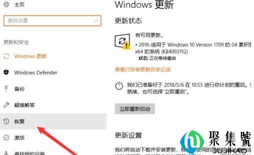 4、在窗口中选择“恢复”按钮,点击打开。