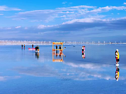 4、湖水波光粼粼,清澈见底,像一只巨大的翡翠。