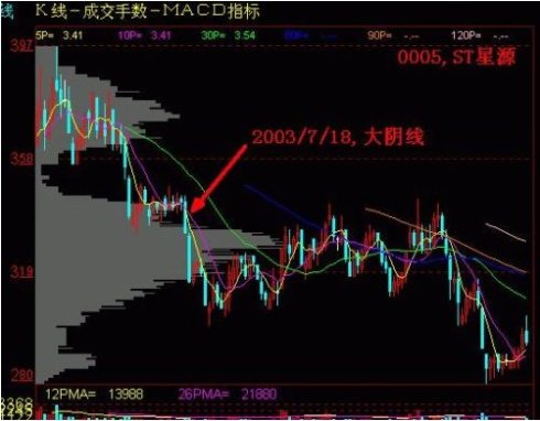 如果柱体表示的时间段内的收盘价高于开盘价,即股价上涨,则将柱体画为红色,反之则画为黑色。如果开盘价正好等于收盘价,则形成十字线