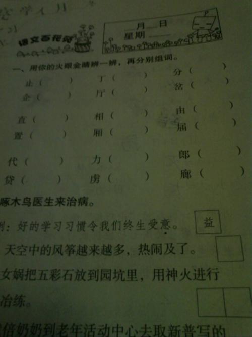 又,再。2儿童额(︶︿︶)=凸@全体家长,希望家长在辅导学生作业时,组词尽量组大众化的,偏僻字最好少用收到,谢谢老师!@全体家长,希望家长在辅导学生作业时,组词尽量组大众化的,偏僻字最好少用1、又及 [yòu jí]? 附带再提一下。信写完并已署名后又添上几句,往往在这几句话下面注明“又及”或“某某又及”。 2、一又 [yī yòu]? 犹一再。 3、又名 [yòu míng]? 又称作,又叫做。 4、又复 [yòu fù]? 又,再。 5、又且 [yòu qiě]? 犹而且。表示进一层意思的连词。 扩展资料 1、又手诏 [yòu shǒu zhào]? 一个典故。 2、可又来 [kě yòu lái]? 对自己或别人说的话表示肯定或加重语气。犹言的确是。元 无名氏《渔樵记》第二折:“[正末云] 刘 家女,你有一件儿好处,四村上下别的妇女都学不的你。[旦儿云]可又来,我也有那一桩儿好处,你说我听。 3、欲出又止 [yù chū yòu zhǐ]? 想要出去又停住脚步,比喻做事犹豫。 4、玄而又玄 [xuán ér yòu xuán]? 指神妙难捉摸,深奥。 5、又惊又喜 [yòu jīng yòu xǐ]? 既惊讶又高兴。 6、又双叒叕 [yòu shuāng ruò zhuó]? 表示某事物变化更替相当频繁。 7、欲言又止 [yù yán yòu zhǐ]? 想说又停止不说。形容有难言的苦衷。又组词