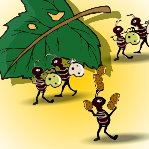 三,团结协作.尤其表现在搬家、防水筑堤和搬运大食物时.当发现一只大黄虫,工蚁搬不动,兵蚁会帮忙将大黄虫钳扯成小块…….