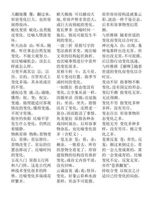 时光飞逝、瞬息万变形容时间很短的四字成语是:白驹过隙昙花一现挥手之间反映人物品质的四字成语是:德高望重高风亮节可敬可畏稍纵即逝:【基本解释】:纵:放;逝:消失。稍微一放松就消失了。形容时间或机会等很容易过去。