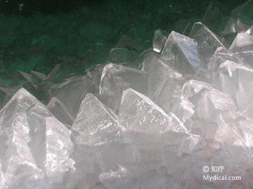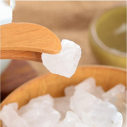 学名:十二水合硫酸铝钾(Alum)分子式:KAl(SO4)2·12H2O又称:明矾、白矾、钾矾、钾铝矾、钾明矾是含有结晶水的硫酸钾和硫酸铝的复盐。化学式KAl(SO4)2·12H2O,式量474.39,无色立方,单斜或六方晶体,有玻璃光泽,密度1.757g/cm3,熔点92.5℃。64.5℃时失去9个分子结晶水,200℃时失去12个分子结晶水,溶于水,不溶于乙醇。明矾性味酸涩,寒,有毒。故有抗菌作用、收敛作用等,可用做中药。明矾还可用于制备铝盐、发酵粉、油漆、鞣料、澄清剂、媒染剂、造纸、防水剂等。明矾净水是过去民间经常采用的方法,它的原理是明矾在水中可以电离出两种金属离子:KAl(SO4)2=K++Al3++2SO42-而Al3+很容易水解,生成胶状的氢氧化铝Al(OH)3:Al3++3H2O=Al(OH)3(胶体)+3H+氢氧化铝胶体的吸附能力很强,可以吸附水里悬浮的杂质,并形成沉淀,使水澄清。所以,明矾是一种较好的净水剂。明矾可由明矾石经煅烧、萃取,结晶而制得。我国产地有安徽省庐江矾矿我国最大的明矾产地应该是浙江省苍南县矾山镇矾矿(占世界总储量的67%)。明矾又名白矾,是明矾石的提炼品。明矾性寒味酸涩,具有较强的收敛作用,中医认为明矾具有解毒杀虫,燥湿止痒,止血止泻,清热消痰的功效。近年来的研究证实,明矾还具有抗菌,抗阴道滴虫等作用。一些中医用明矾来治疗高脂血症、十二指肠溃疡、肺结核咯血等疾病。此外,明矾还是传统的食品改良剂和膨松剂,常用作油条、粉丝、米粉等食品生产的添加剂。但是由于明矾的化学成份为硫酸铝钾,含有铝离子,所以过量摄入会影响人体对铁、钙等成份的吸收,导致骨质疏松、贫血,甚至影响神经细胞的发育。因此,一些营养专家提出,要尽量少吃含有明矾的食品。明矾是传统的净水剂,一直被人们所广泛使用