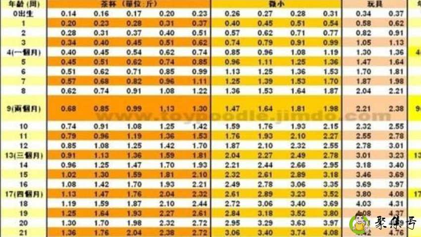 泰迪,又名贵宾犬。贵宾犬根据体型大小分为标准型、微小型、玩具型和茶杯型。不同体型的贵宾犬的体重也是不一样的,而泰迪体重体型对照表就是为了衡量狗狗在成长阶段的是否身体健康而制定的在各个阶段的不同标准。