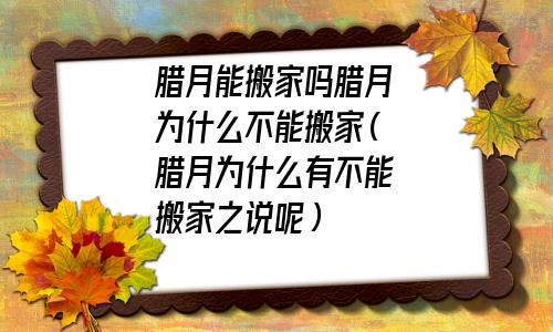 因为腊月天非常寒冷,不论是新房入住还是搬家运输都非常不方便,在风水角度将也不太好。
