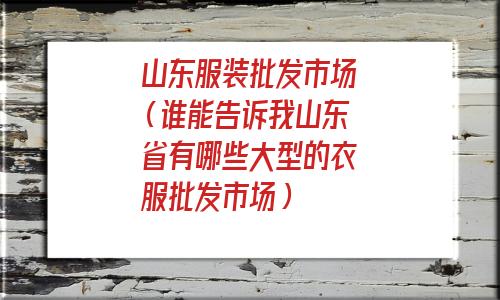 临沂服装批发市场位于山东省,主营服装品种主要有:西装、童装、男女时装、妇女用品、衬衣、牛仔服等六大类上千个品种。
