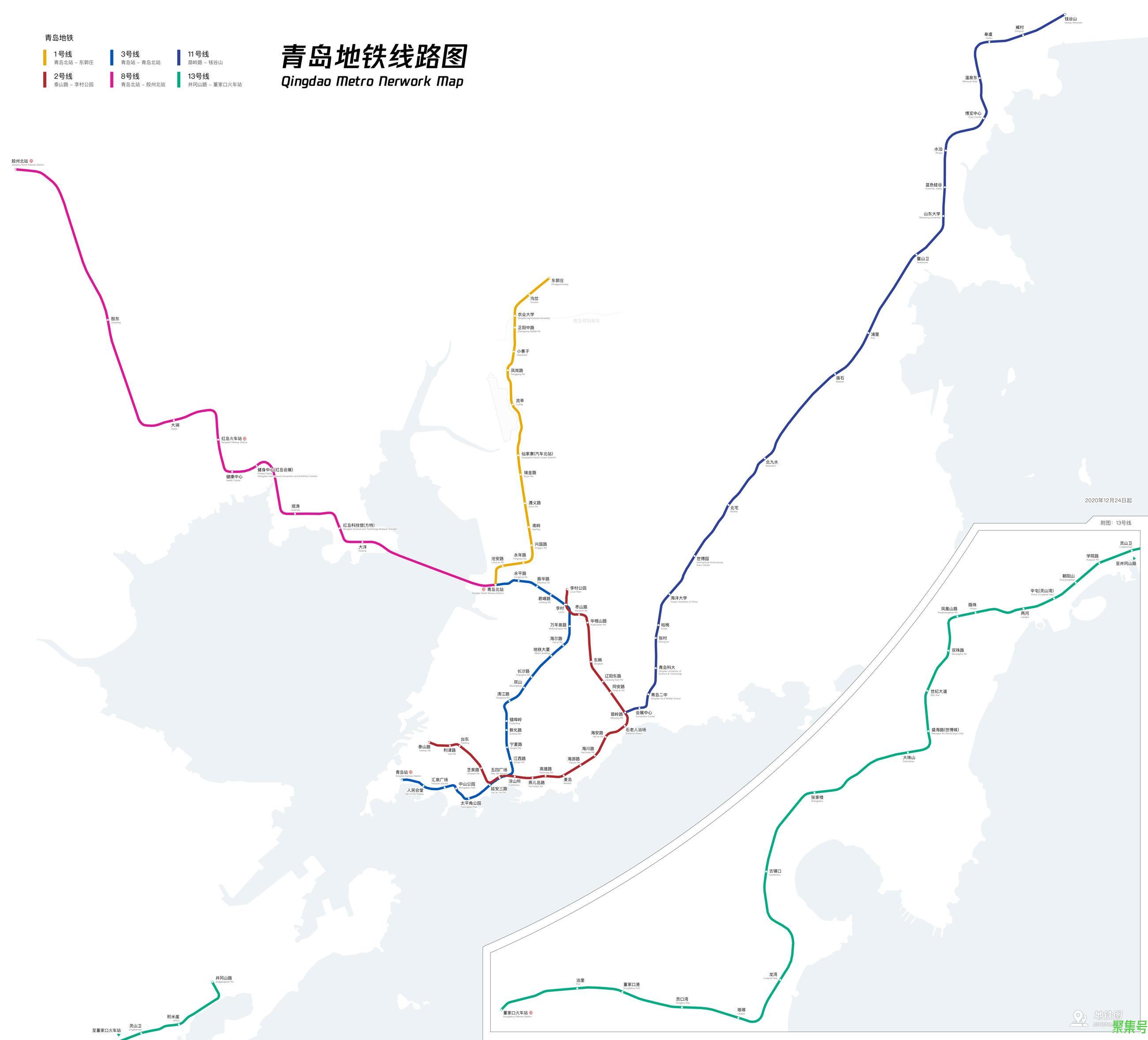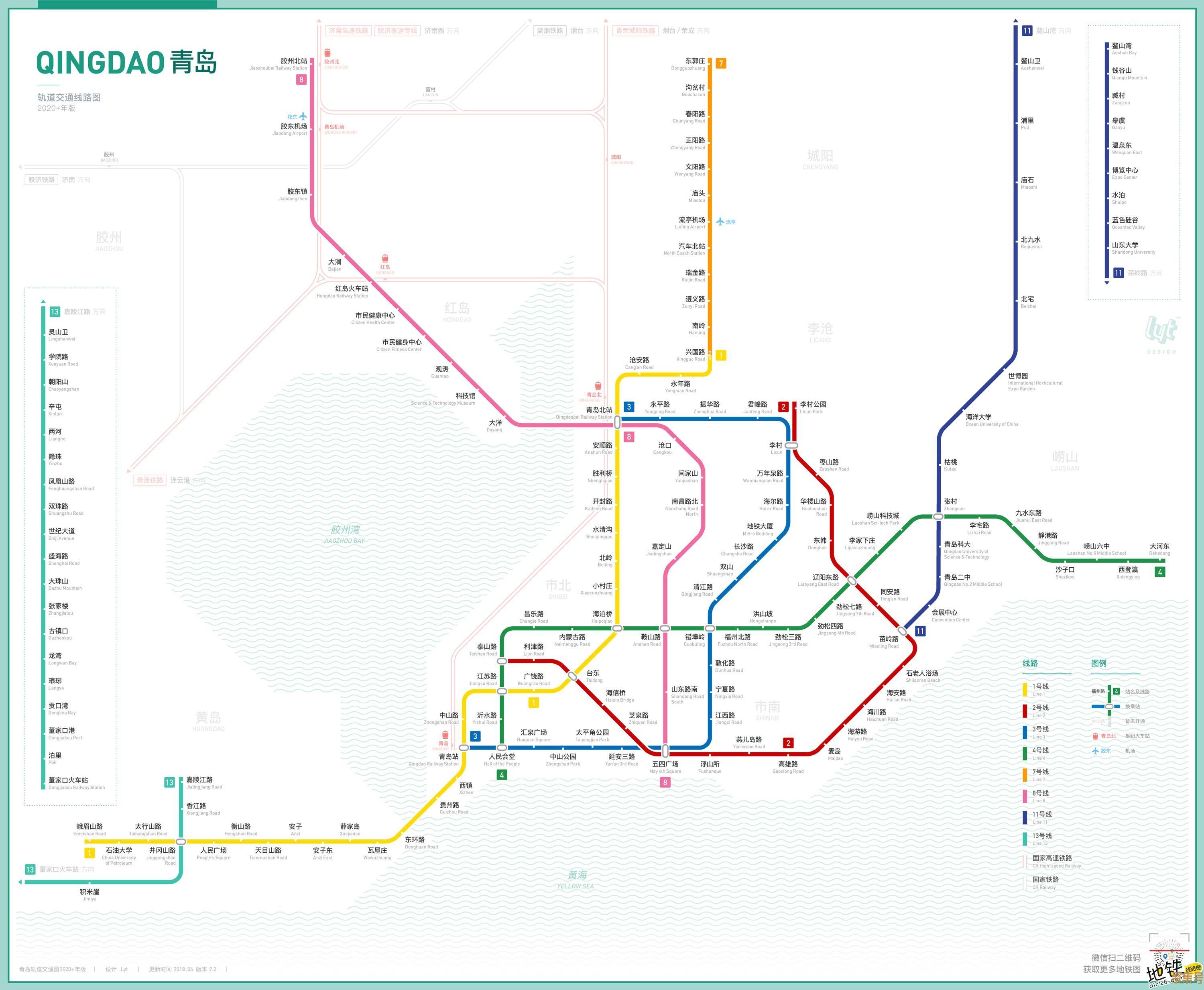截至2020年12月,青岛地铁共有运营线路6条,正线全长246.56 km,运营有效总长241.143 km,车站106座,青岛地铁便民热线电话:55770000。