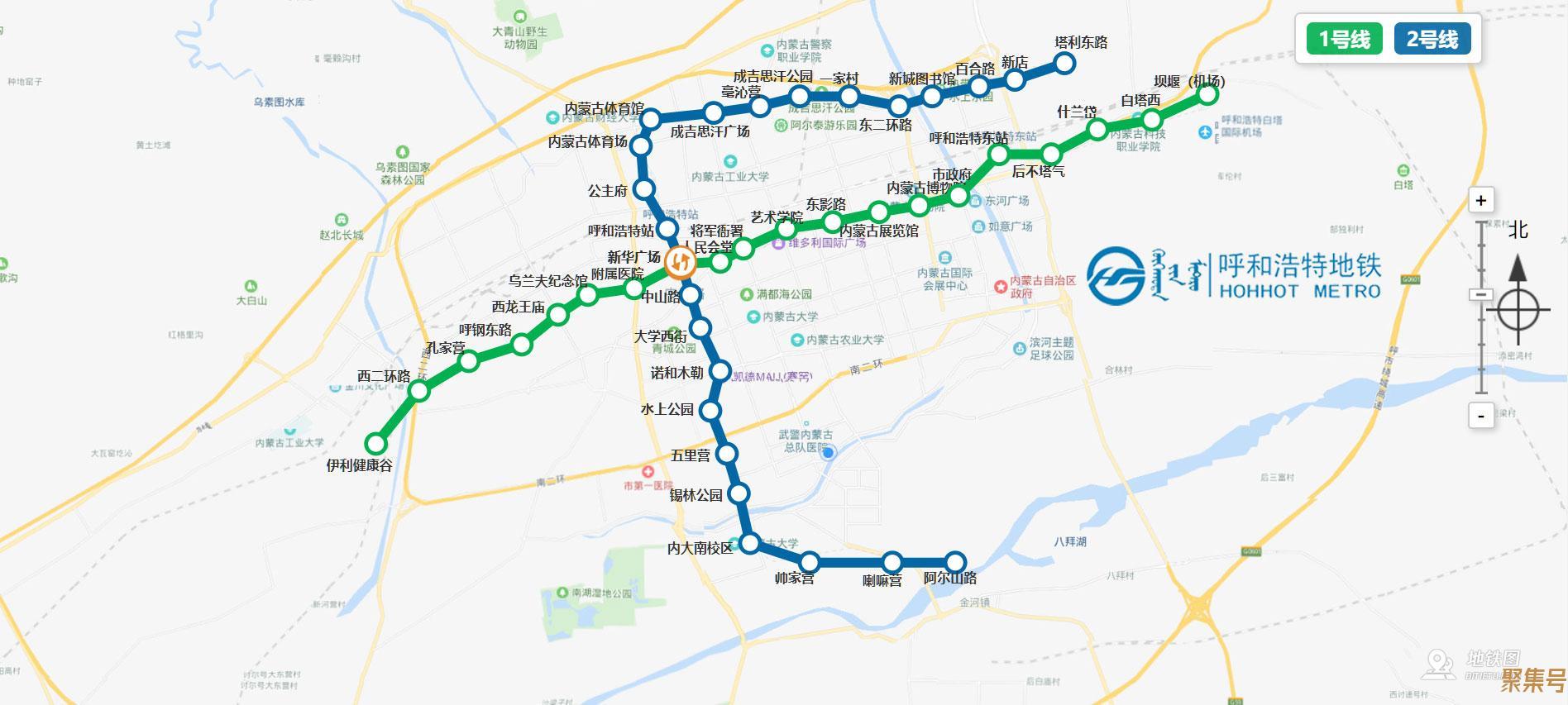 呼和浩特地铁是服务于中国内蒙古自治区呼和浩特市的城市轨道交通系统。规划中的呼和浩特轨道交通共有5条线路,总长155公里,设站123座。2015年4月15日,国家发改委正式批复呼和浩特市轨道交通建设规划,首期建设为1号线一期和2号线一期工程。其中1号线一期东起坝堰(机场)站,西至伊利健康谷站,全线长21.72公里,共设车站20座,于2019年12月29日开通运营。2号线一期东北起塔利东路站,南至阿尔山路站,全线长27.3公里,共设车站24座,于2020年10月1日开通运营。