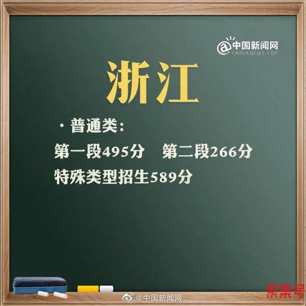 浙江省教育考试院25日公布2021年浙江省普通高校招生各类别分数线:普通类第一段495分,第二段266分。特殊类型招生589分。
