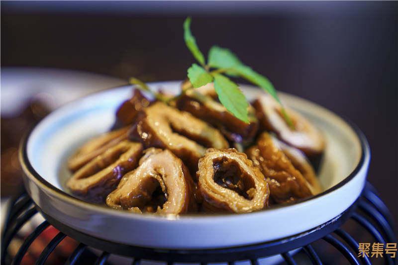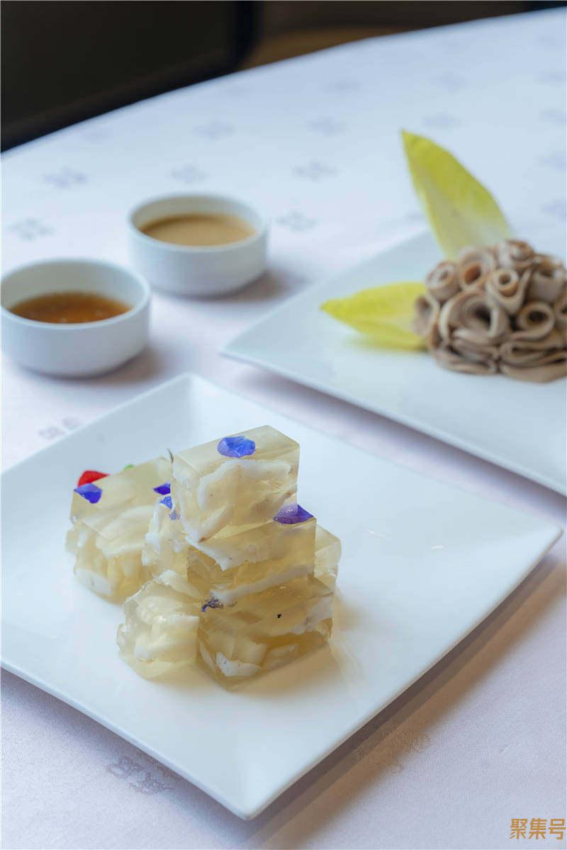 说起鸡鸭鹅,绍兴人喜欢把它们酱腌卤,又是一种干菜和霉臭之外长期储存食物的方法。最典型的酱货当数酱鸭,只是夏天不是做酱鸭的时候,若是冬天来,杭嘉湖一带几乎家家都会晾晒酱鸭。既然没有酱鸭,几荷餐厅的金海良主厨就给我们做了一份卤鸭,卤鸭一年四季都可以做,也是一道餐桌上的硬通货。
