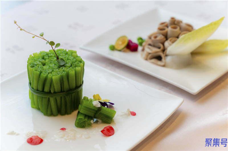 上世纪八九十年代,国营大饭店还流行做不少精致菜肴,但太麻烦,时间和食材成本都大,现在都不做了。为了衬得上夏天,茅天尧专门做了几道时令的精致功夫菜,他给这桌小宴起名为“夏日追味”——吐司脆鳝、藏瓜、芙蓉扒瓜方、荷叶粉蒸肉,每道菜里都有夏日的时令元素。准备和制作的流程都非常繁琐,比如单是用香菇做成素鳝,剪丝、造型、腌制、油炸、沥干就是一套麻烦的工序。每一样食材几乎都是要做一套自己的烹饪流程之后,再组合到一起,成为一道菜,即所谓“功夫”。