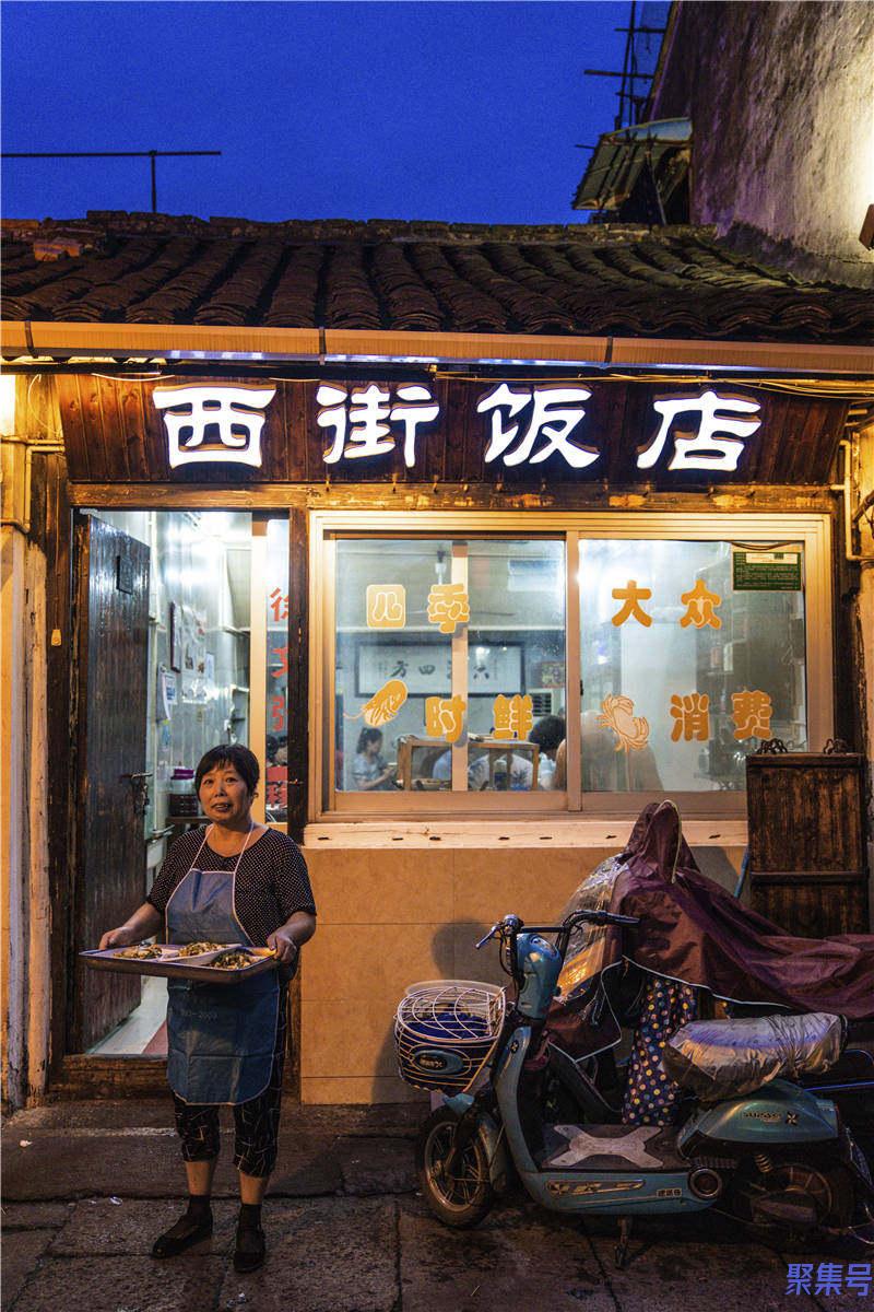 到书圣故里时是傍晚,这里还保留着原生态的样子,老房子里住着老人,他们喜欢在台门门口支张小桌吃饭。我凑近看看,吃得很是简单。霉豆腐蒸肉、干菜汤、炒青菜、蒸鱼鲞、咸肉,大多是这些。故里街道上有不少饭馆,日落时分锅气四起。小巷里的房子往往很小,饭馆生意做大后,地方就不够了,于是不少饭馆有好几个铺面,但厨房只有一个。厨房出菜后,就能看见服务员端着各种菜式穿梭在小巷间四处送菜。各种菜的香气混杂在空气里,就是绍兴的味道。