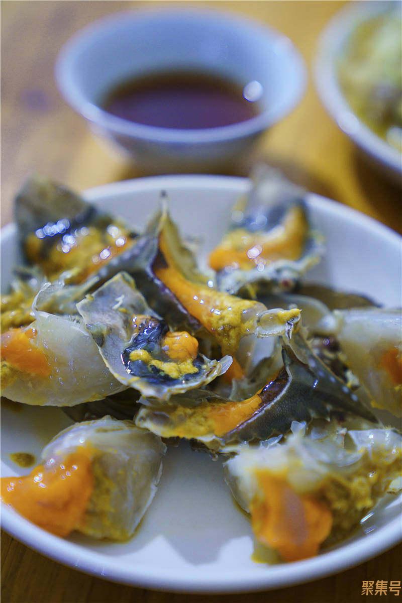 说起干菜,我想起有一天在鲁迅故里做绍兴融合菜的寻宝记吃饭。我们跟老板和主厨商量很久,希望看到一桌全醉宴,也都是寻宝记的招牌菜。以醉和糟的做法为主,各种鱼肉虾蟹摆满了一桌,糟醉的菜都是实打实的肉,没有半点含糊,几筷子下肚也就基本能吃个半饱了,口中还留有老酒香,满足得很。可架不住吃得多,主厨见我们在糟鸡醉蟹面前败下阵来,不经意地说了句:“来份过桥河虾吧,清淡一下。”我有点怵,还有虾?于是放下手里那只熟醉朝虾,又看了一眼桌上的冰醉小龙虾。