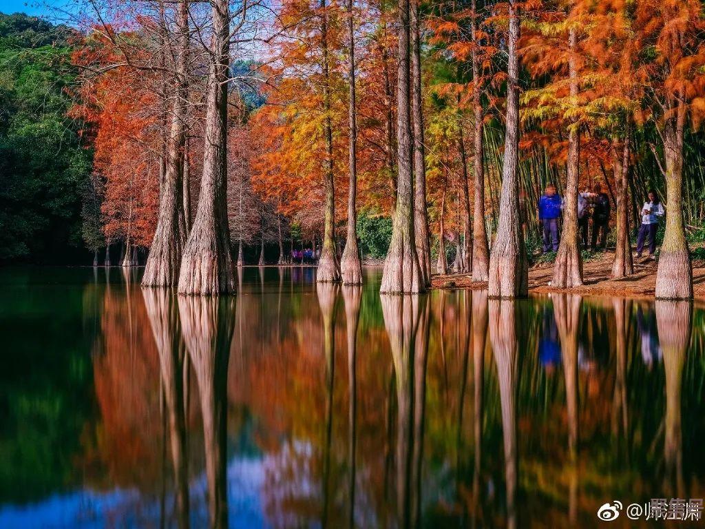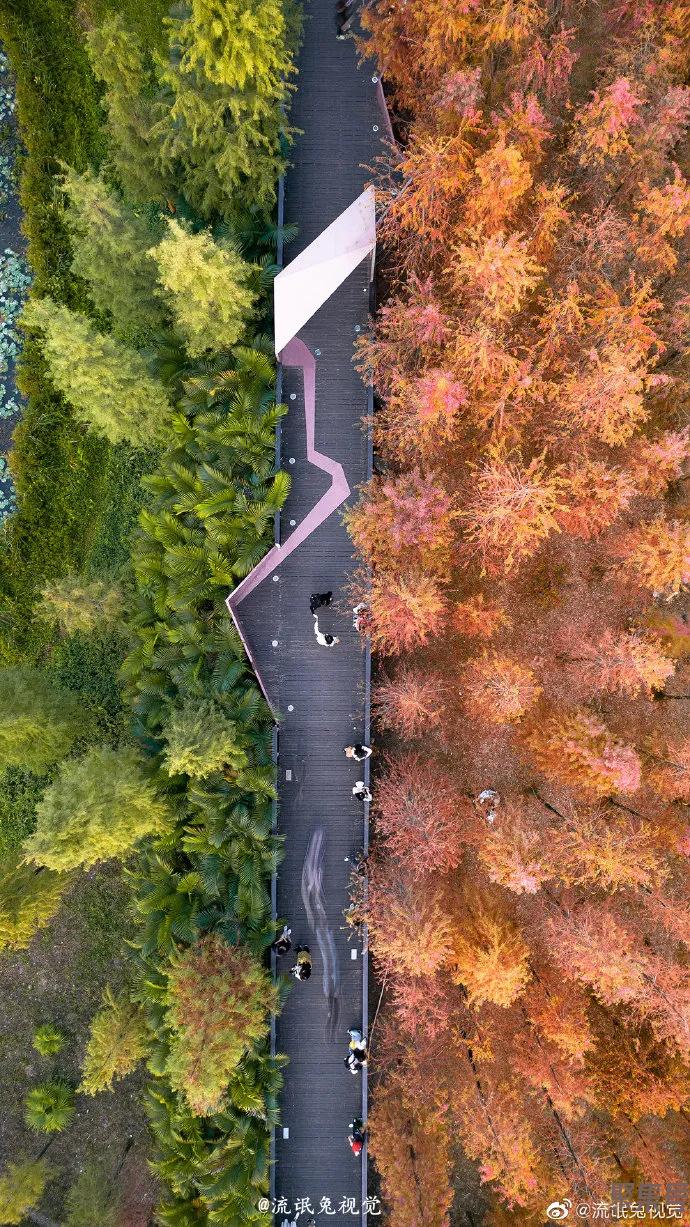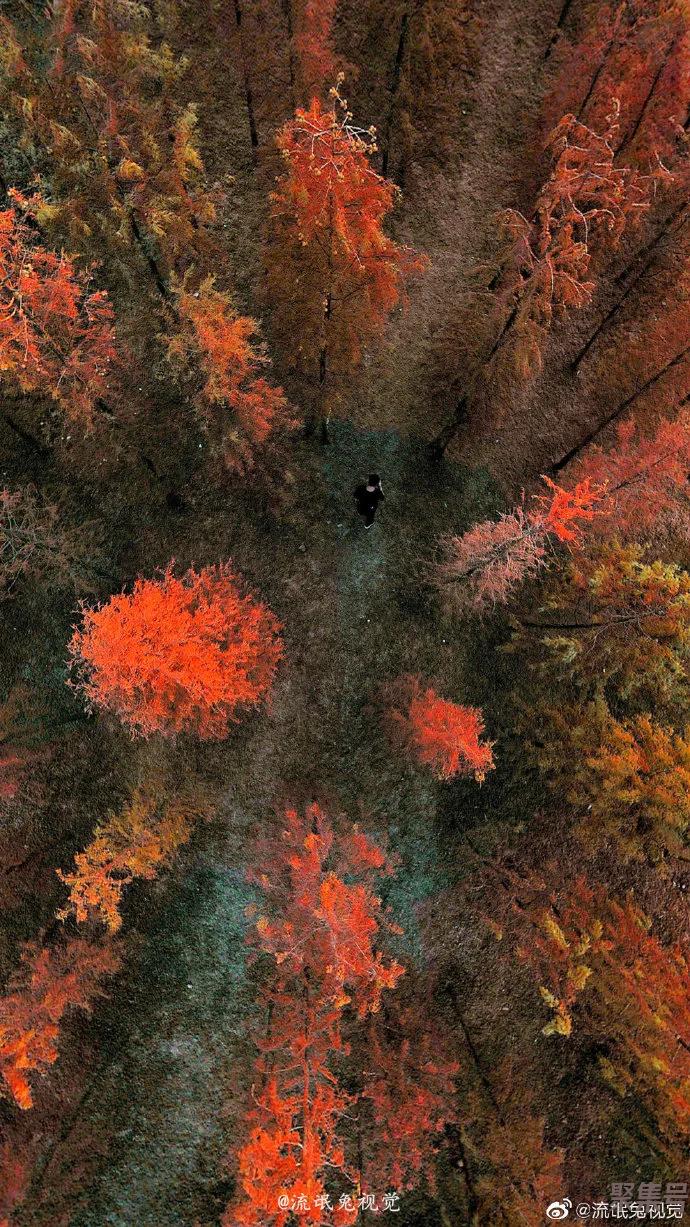 在绿色中渗入了越来越多橘红和金黄的暖色,